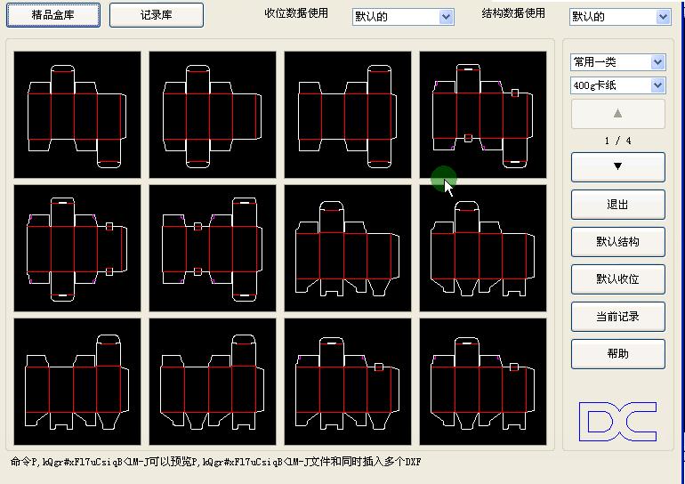 软件功能强大,拥有自动描图(自动扫描异型的描公仔、描不干胶、描盒子,自动相切处理,使圆弧顺滑,强制相切,弯刀机弯起来没有反角,没有反位)、自动拼版、常用盒型库、精品灰板礼品盒 自动批量边框、自动桥位、刀模计价、快速变块……一些实用工具,完美支持CAD2004-2010电脑远程安装,附带全套视频教程 作盒型的思路(根据平常绘图习惯或者客户要求修改保存收位)选择材质,选择盒型,输入长宽高刀模图自动生成,文件一次可保存多个地方多个格式,大大提高了绘图效率,操作傻瓜化,零出错,无论你有无CAD基础,一看便会。软件单独运行在U盘中,不受电脑限制,永久属于您。 这是一款能改变刀模绘图师傅绘制盒型传统画法的软件,更是一款颠覆刀模行业的神器。