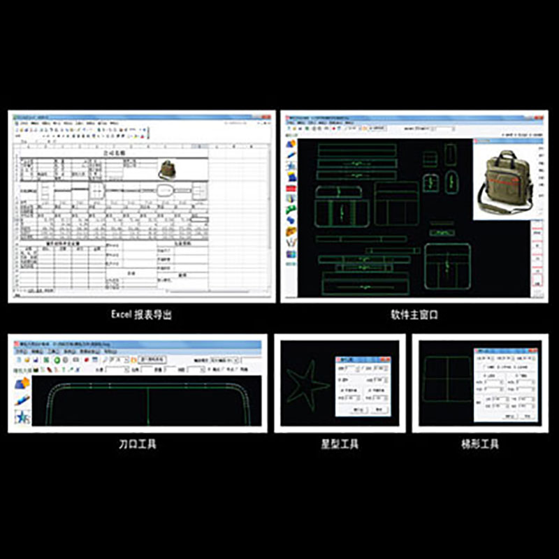 17、自动排刀:完全按照箱包行业面料的工艺要求,按设定纸格套数,先大片,再小片,最后补刀的方式自动排刀.可对特殊形状纸格进行偷刀等人工组合后再自动排刀,达到省料目的;并完全配合冲床或自动裁床,方便捡料,减轻工人工作强度.使料率,长度等信息被准确量化并可及时了解.